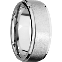 8 mm wide Flat Grooved Edges 14K White Gold band.