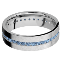 7 mm wide/Flat/14K White Gold band with an Eternity arrangement of .03 carat Round Denim Sapphire stones in a Channel setting. - TCW 0.99ct.