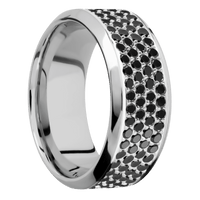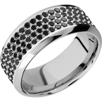 9 mm wide/High Bevel/14K White Gold band with a 4 Row Half Eternity arrangement of .015 carat Round Black Diamond stones in a Bead Channel setting. - TCW 1.35ct.