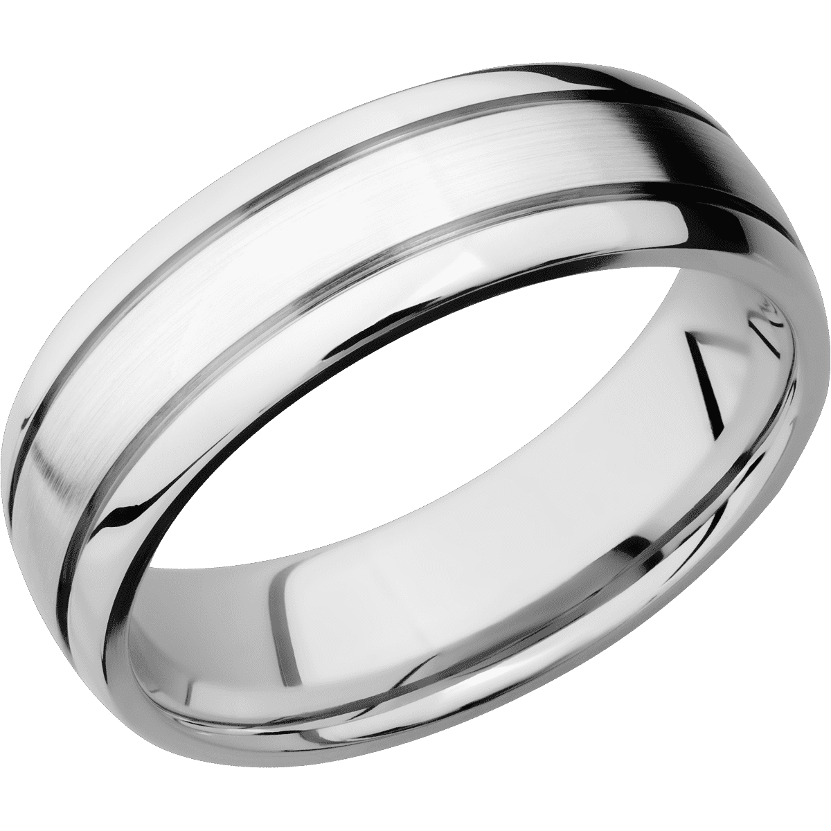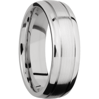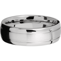 7 mm wide Domed with two accent grooves 14K White Gold band.