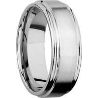 8 mm wide Flat Rounded Edges 14K White Gold band.