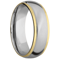 7 mm wide/Domed Stepped Down Edges/14K White Gold band with two 1 mm Edge inlays of 14K Yellow Gold.