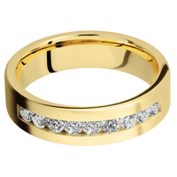 6 mm wide/Flat/14K Yellow Gold band with an arrangement of 9, .07 carat Round Diamond stones in a Channel setting. - TCW 0.63ct - TCW 0.63ct.