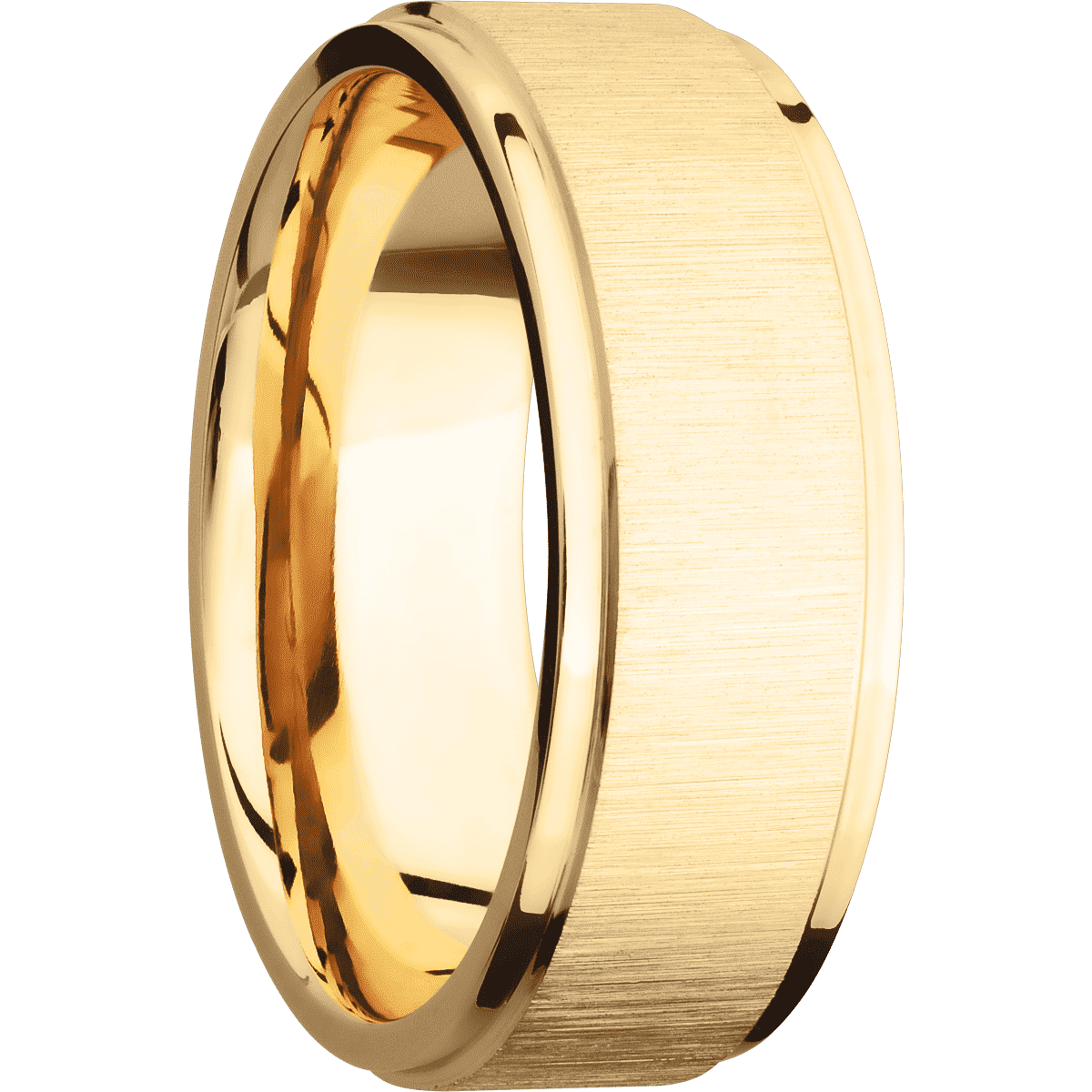 8 mm wide Flat Grooved Edges 14K Yellow Gold band.