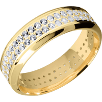 7 mm wide/High Bevel/14K Yellow Gold band with a 2 Row Eternity arrangement of .015 carat Round Diamond stones in a Bead Channel setting. - TCW 1.35ct - TCW 1.35ct.