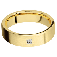 6 mm wide/Flat/14K Yellow Gold band with an arrangement of 1, .1 carat Princess Diamond stones in a Flush setting. - TCW 0.1ct.