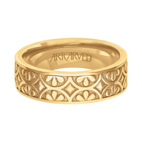 "7MM 1850 Collection Carved Geometric Floral Comfort Fit Band with Sandblast Details and Polished Flat Profile