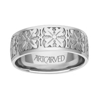 "8MM 1850 Collection Comfort Fit Band with Carved Polished Geometric Floral Center and Sandblast Details with Polished Low Dome Profile"