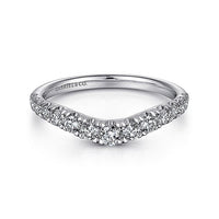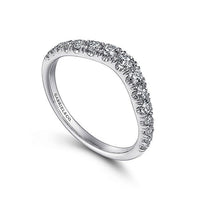 HOME / Gabriel & Co. AN10958W44JJ Curved 14K White Gold French Pavé Set Diamond Wedding Band