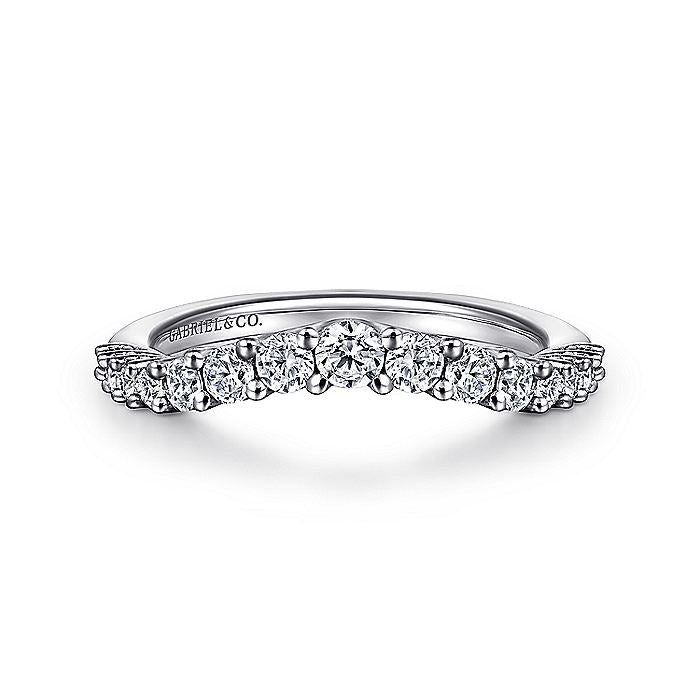 HOME / Gabriel & Co. AN10959W44JJ Curved 14K White Gold Shared Prong Diamond Wedding Band