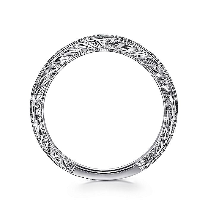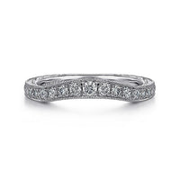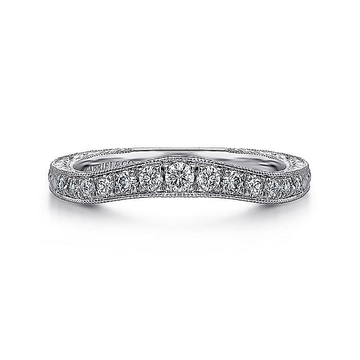 Gabriel & Co. AN10966W44JJ Vintage Inspired Curved 14K White Gold Micro Pavé Diamond Wedding Band with Engraving