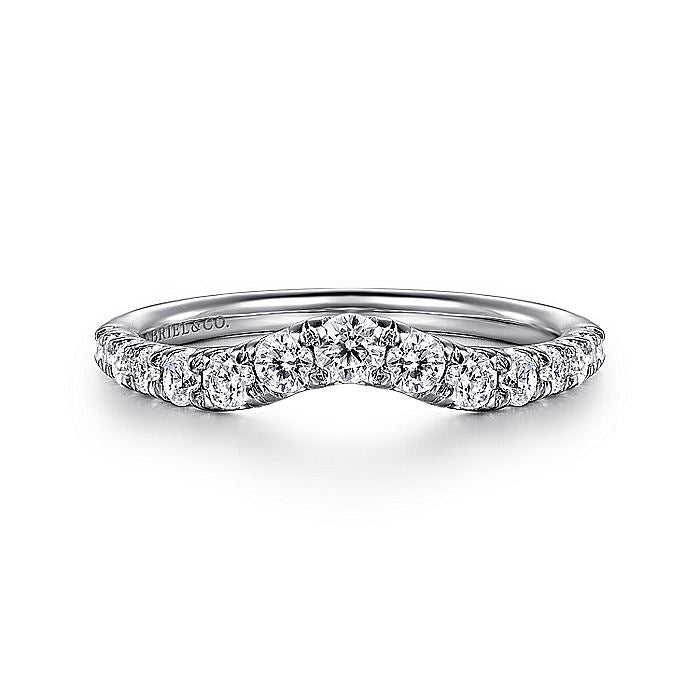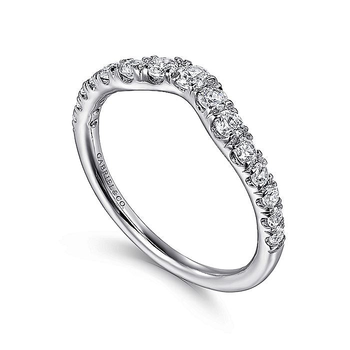 HOME / Gabriel & Co. AN10969W44JJ Curved 14K White Gold French Pavé Diamond Wedding Band