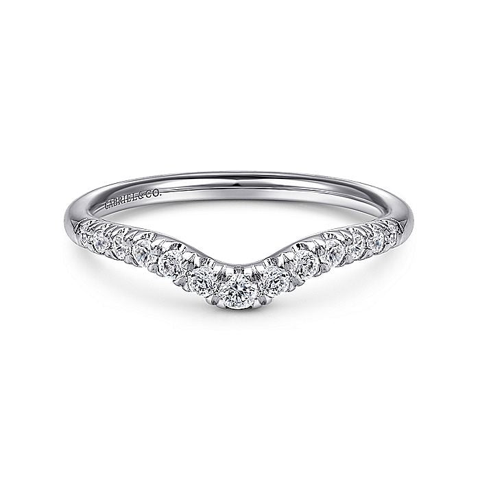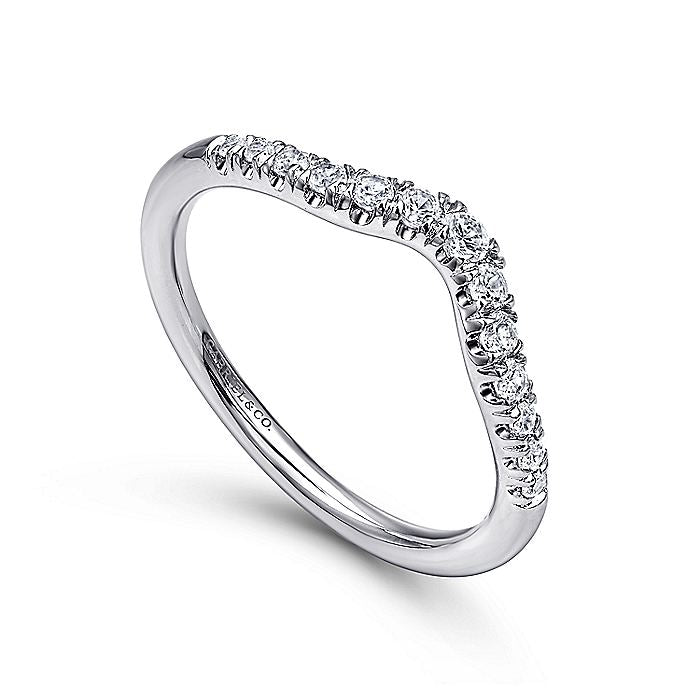 HOME / Gabriel & Co. AN10974W44JJ Curved 14K White Gold French Pavé Diamond Wedding Band