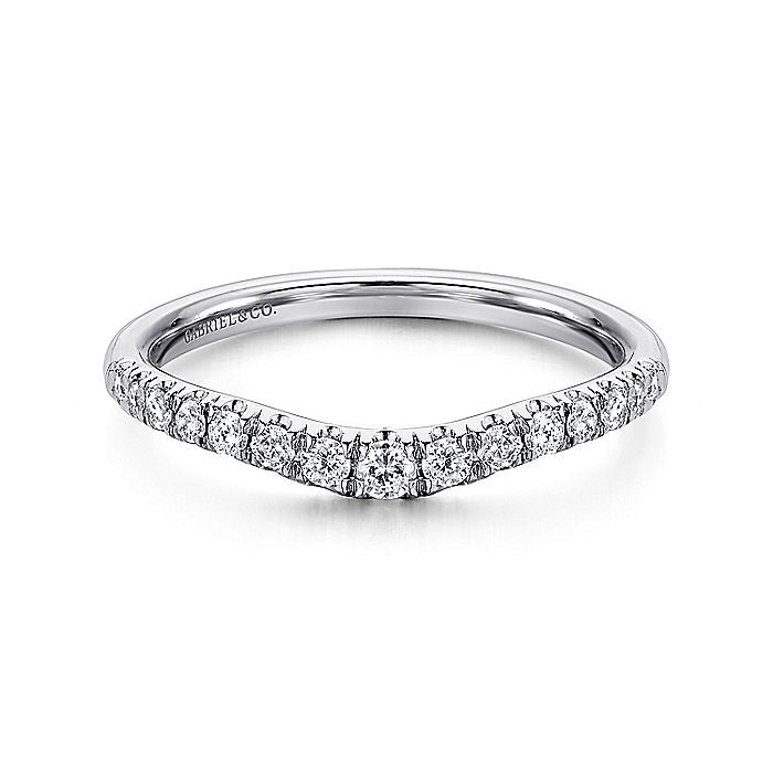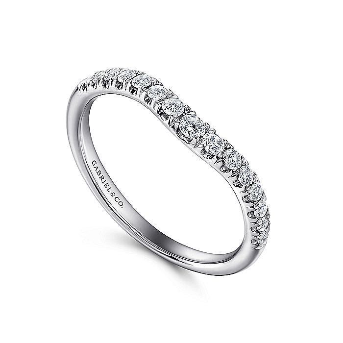HOME / Gabriel & Co. AN11013W44JJ Curved 14K White Gold French Pavé Diamond Wedding Band