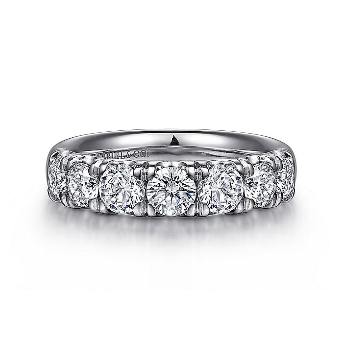 Gabriel & Co. AN11175W44JJ 14K White Gold 7 Stone French Pavé Set Diamond Wedding Band