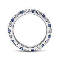 Sparkling diamonds are punctuated by velvety sapphires in this unforgettable white gold eternity band.