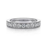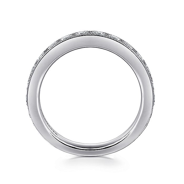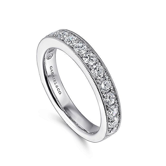 HOME / Gabriel & Co. AN12079W44JJ 14K White Gold Micro Pavé Set Diamond Wedding Band with Millgrain