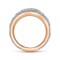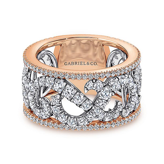 HOME / Gabriel & Co. AN12421T44JJ Wide 14K White and Rose Gold French Pavé Set Scrollwork Design Diamond Ring
