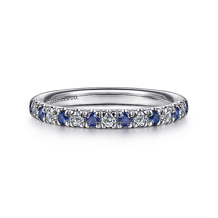 HOME / Gabriel & Co. AN14190W44SA 14K White Gold 15 Stone Diamond and Sapphire Anniversary Band