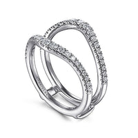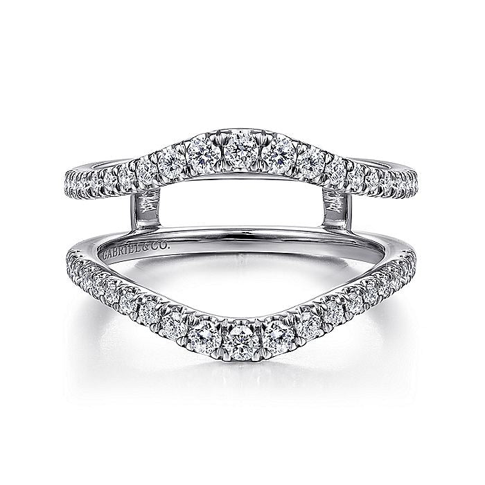 Designed to wrap around your own engagement ring, this gracefully contoured ring jacket is an ideal way to celebrate a wedding anniversary. This style features two strands of 14k white gold encrusted in brilliant .49ct pavé diamonds to expertly enhance your ring's sparkle.