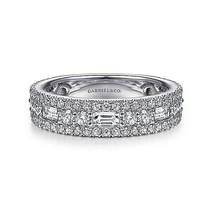 HOME / Gabriel & Co. AN15294W44JJ Wide 14K White Gold Round and Baguette Diamond Anniversary Band
