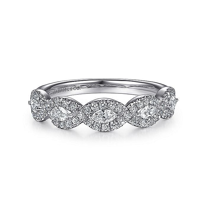 Gabriel & Co. AN15312W44JJ 14K White Gold Marquise Halo Station Diamond Anniversary Band