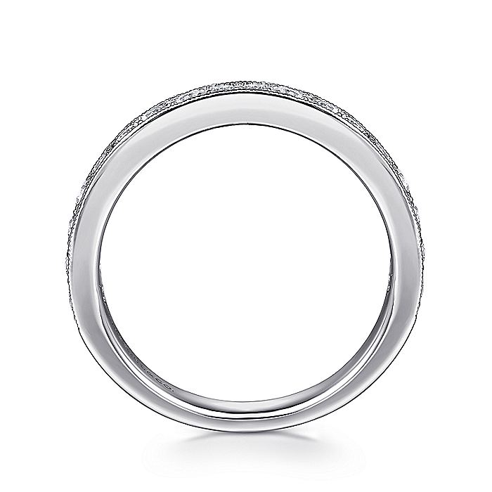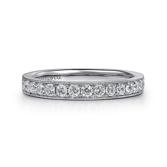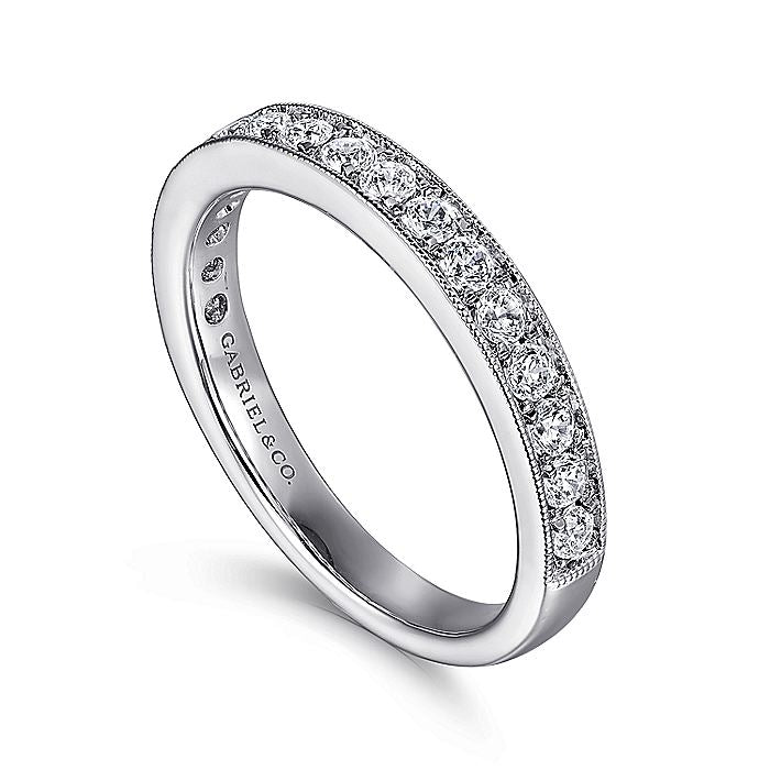 HOME / Gabriel & Co. AN7644W44JJ 14K White Gold Micro Pavé Channel Diamond Wedding Band with Millgrain