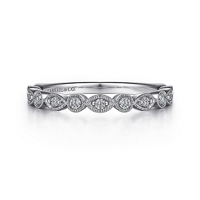 HOME / Gabriel & Co. AN8386W44JJ Vintage Inspired 14K White Gold Marquise and Round Station Diamond Anniversary Band