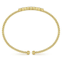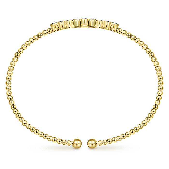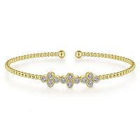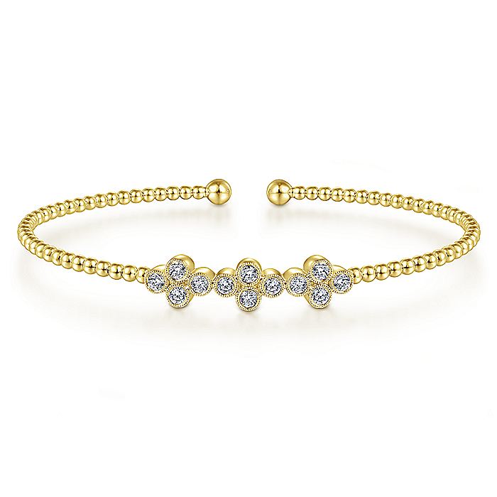 HOME / Gabriel & Co. BG4115-62Y45JJ 14K Yellow Gold Bujukan Bead Cuff Bracelet with Three Quatrefoil Diamond Stations