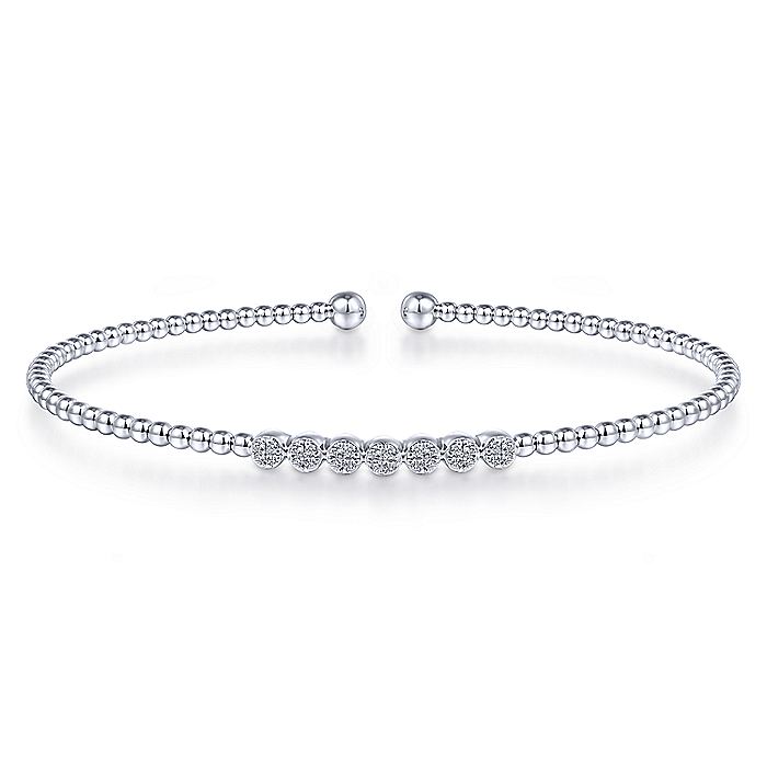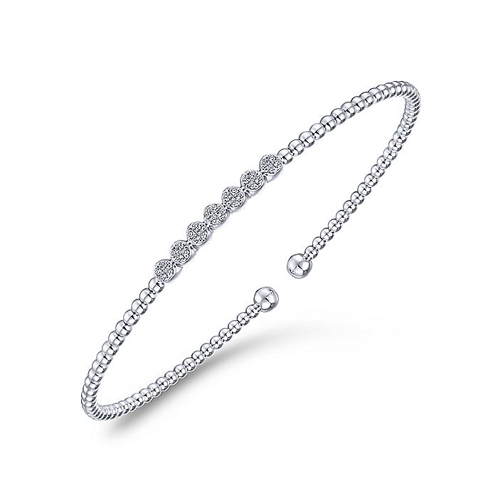 HOME / Gabriel & Co. BG4116-62W45JJ 14K White Gold Bujukan Bead Cuff Bracelet with Cluster Diamond Stations