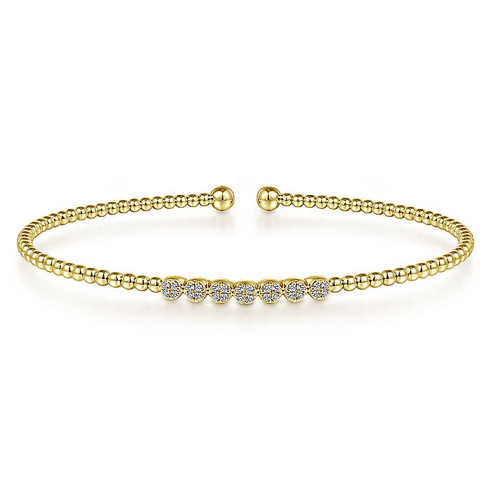 HOME / Gabriel & Co. BG4116-62Y45JJ 14K Yellow Gold Bujukan Bead Cuff Bracelet with Cluster Diamond Stations
