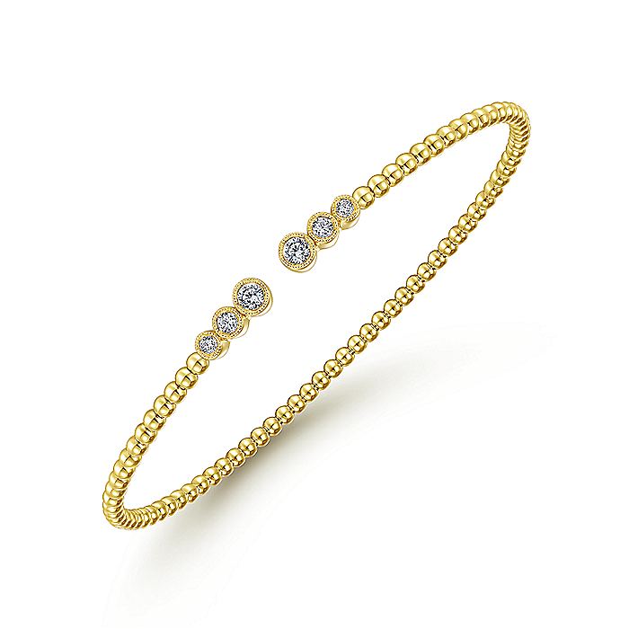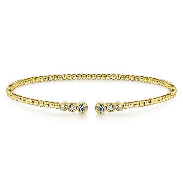 HOME / Gabriel & Co. BG4120-62Y45JJ 14K Yellow Gold Bujukan Bead Split Cuff Bracelet with Bezel Set Diamonds
