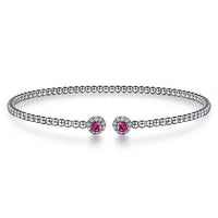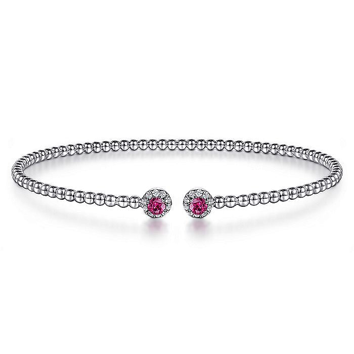HOME / Gabriel & Co. BG4122-62W45RA 14K White Gold Bujukan Bead Split Cuff Bracelet with Ruby and Diamond Bangle