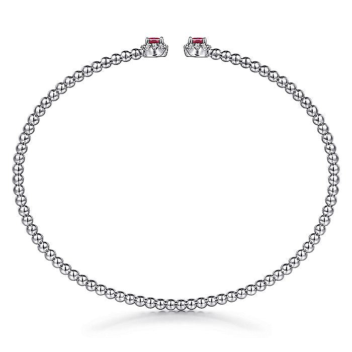 Gabriel & Co. BG4122-62W45RA 14K White Gold Bujukan Bead Split Cuff Bracelet with Ruby and Diamond Bangle