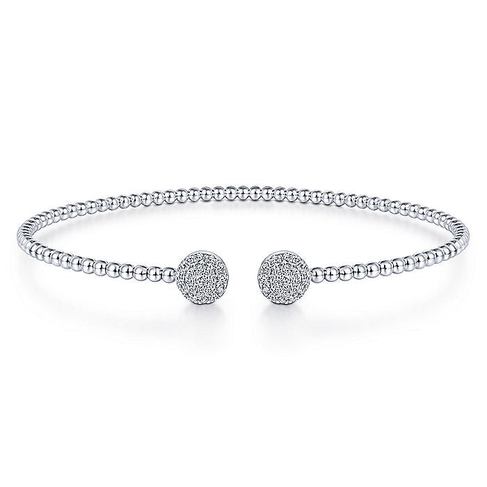 Gabriel & Co. BG4123-62W45JJ 14K White Gold Bujukan Split Cuff Bracelet with Round Pave Diamond Discs in size 6.25
