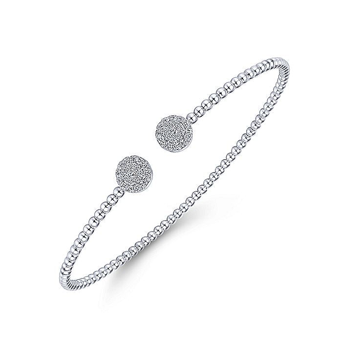 HOME / Gabriel & Co. BG4123-62W45JJ 14K White Gold Bujukan Split Cuff Bracelet with Round Pave Diamond Discs in size 6.25