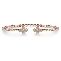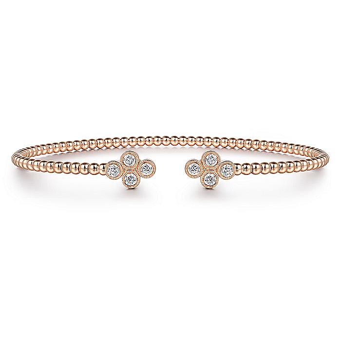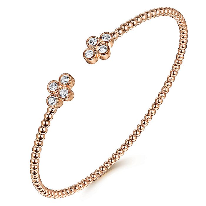 HOME / Gabriel & Co. BG4124-62K45JJ 14K Rose Gold Bujukan Bead Split Cuff Bracelet with Quatrefoil Diamond Endcaps