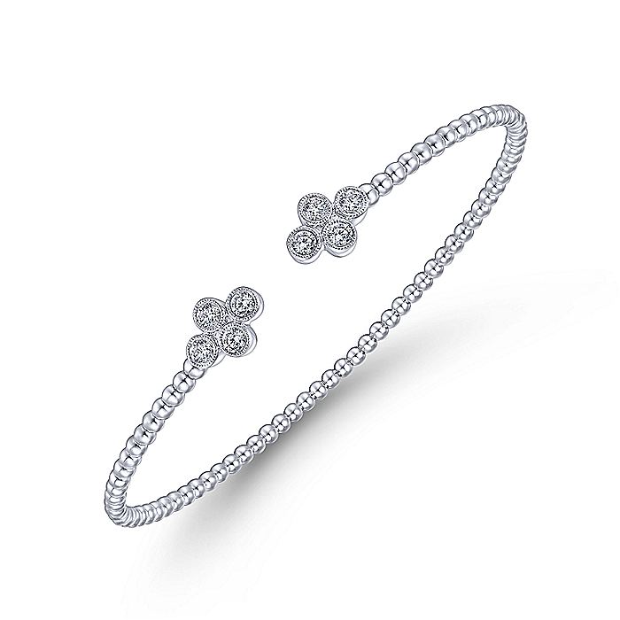 Gabriel & Co. BG4124-62W45JJ 14K White Gold Bujukan Split Cuff Bracelet with Quatrefoil Diamond Endcaps in size 6.25