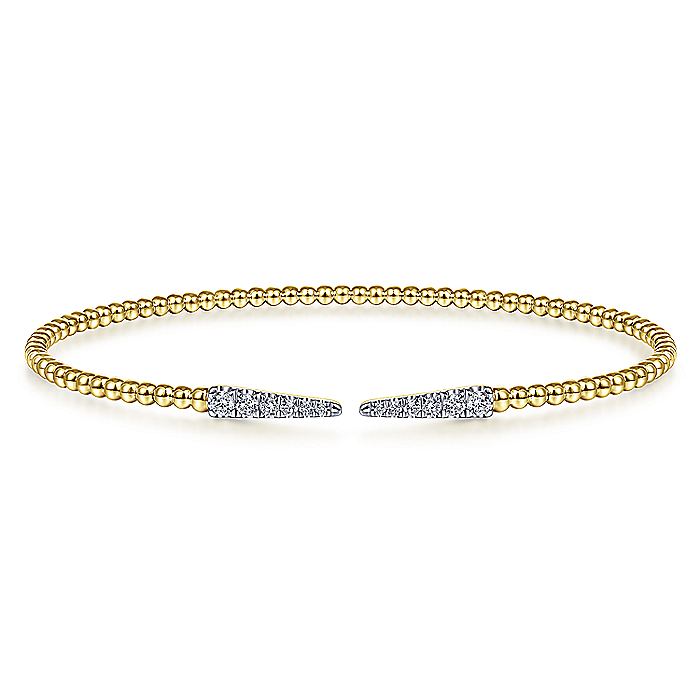 HOME / Gabriel & Co. BG4216-62Y45JJ Split 14K Yellow Gold Bujukan Bead Cuff Bracelet with Diamond Pavé Spikes