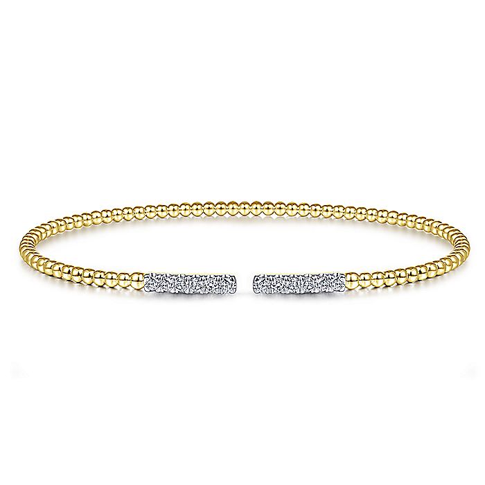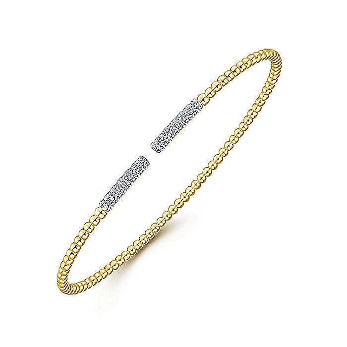 HOME / Gabriel & Co. BG4218-62Y45JJ 14K Yellow Gold Bujukan Bead Cuff Bracelet with Diamond Pavé Bars