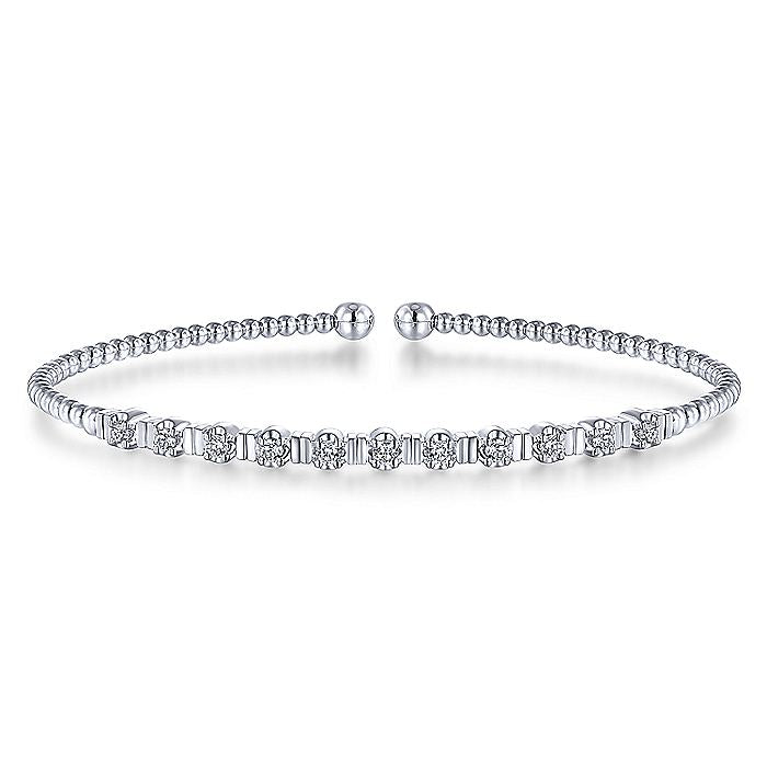 HOME / Gabriel & Co. BG4228-62W45JJ 14K White Gold Bujukan Bead Cuff Bracelet with Diamond Stations