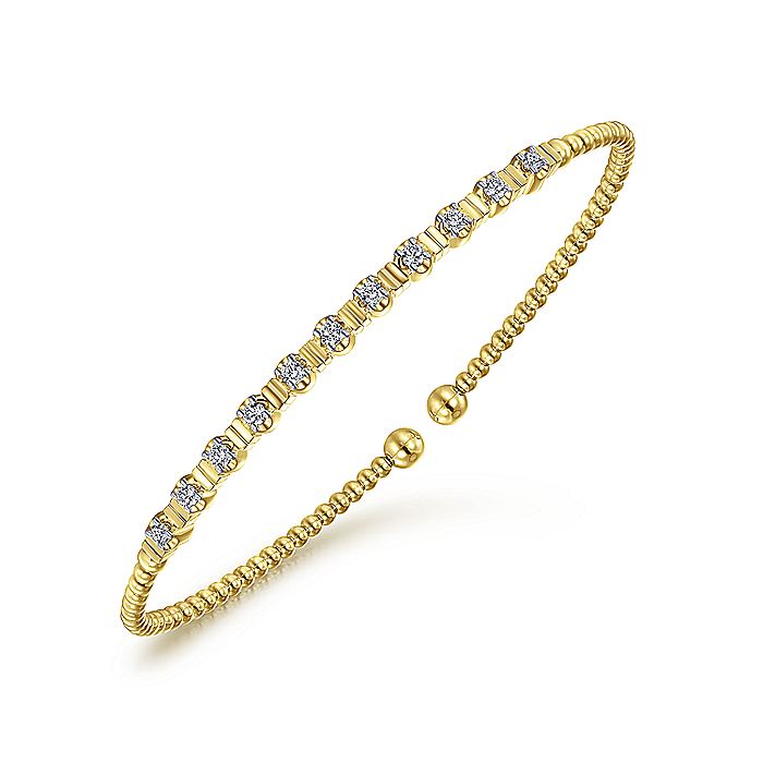 HOME / Gabriel & Co. BG4228-62Y45JJ 14K Yellow Gold Bujukan Cuff Bracelet with Diamond Stations in size 6.25