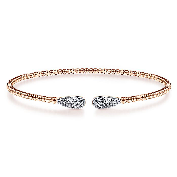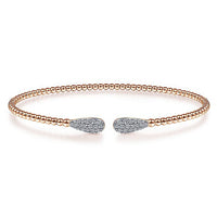 HOME / Gabriel & Co. BG4230-62K45JJ 14K Rose Gold Bujukan Bead Cuff Bracelet with Diamond Pavé Teardrops