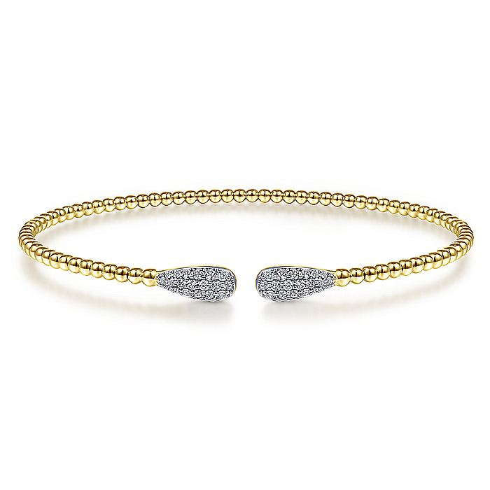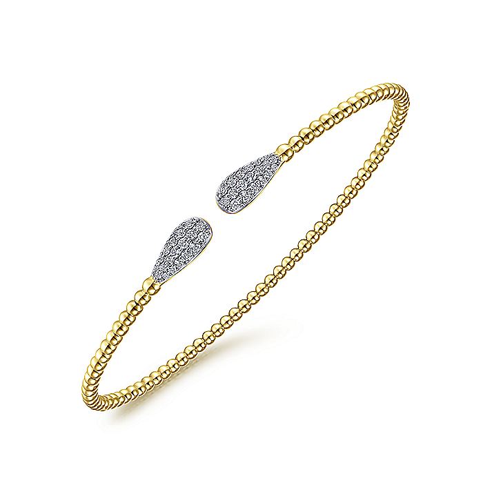 HOME / Gabriel & Co. BG4230-62Y45JJ 14K Yellow Gold Bujukan Bead Cuff Bracelet with Diamond Pavé Teardrops