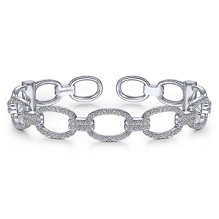 Gabriel & Co. BG4237-62W45JJ 14K White Gold Diamond Pavé Chain Link Cuff Bracelet