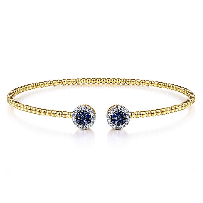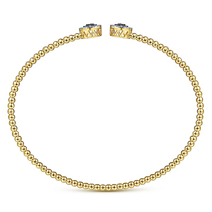 HOME / Gabriel & Co. BG4244-62Y45SA 14K Yellow Gold Bujukan Bead Cuff Bracelet with Sapphire and Diamond Halo Caps