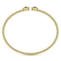 Gabriel & Co. BG4244-62Y45SA 14K Yellow Gold Bujukan Bead Cuff Bracelet with Sapphire and Diamond Halo Caps