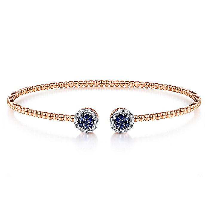 HOME / Gabriel & Co. BG4244-65K45SA 14K Rose Gold Bujukan Bead Cuff Bracelet with Sapphire and Diamond Halo Caps