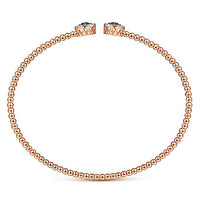 Gabriel & Co. BG4244-65K45SA 14K Rose Gold Bujukan Bead Cuff Bracelet with Sapphire and Diamond Halo Caps