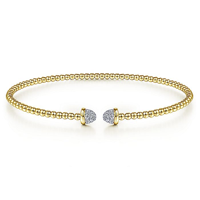 HOME / Gabriel & Co. BG4248-62Y45JJ 14K Yellow Gold Bujukan Bead Cuff Bracelet with Diamond Pavé Caps
